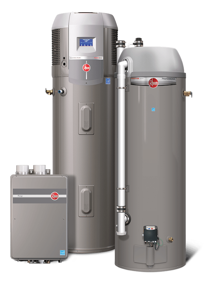 With a full line of Rheem® tank and tankless water heaters to choose from, there’s sure to be one that’s the right fit for your family. Whether you need high water delivery or low energy costs—or both, we have your next water heater. Offering sustainable, high efficiency tankless water heaters, gas tank water heaters, and the most efficient water heater on earth – the Rheem hybrid electric water heater.